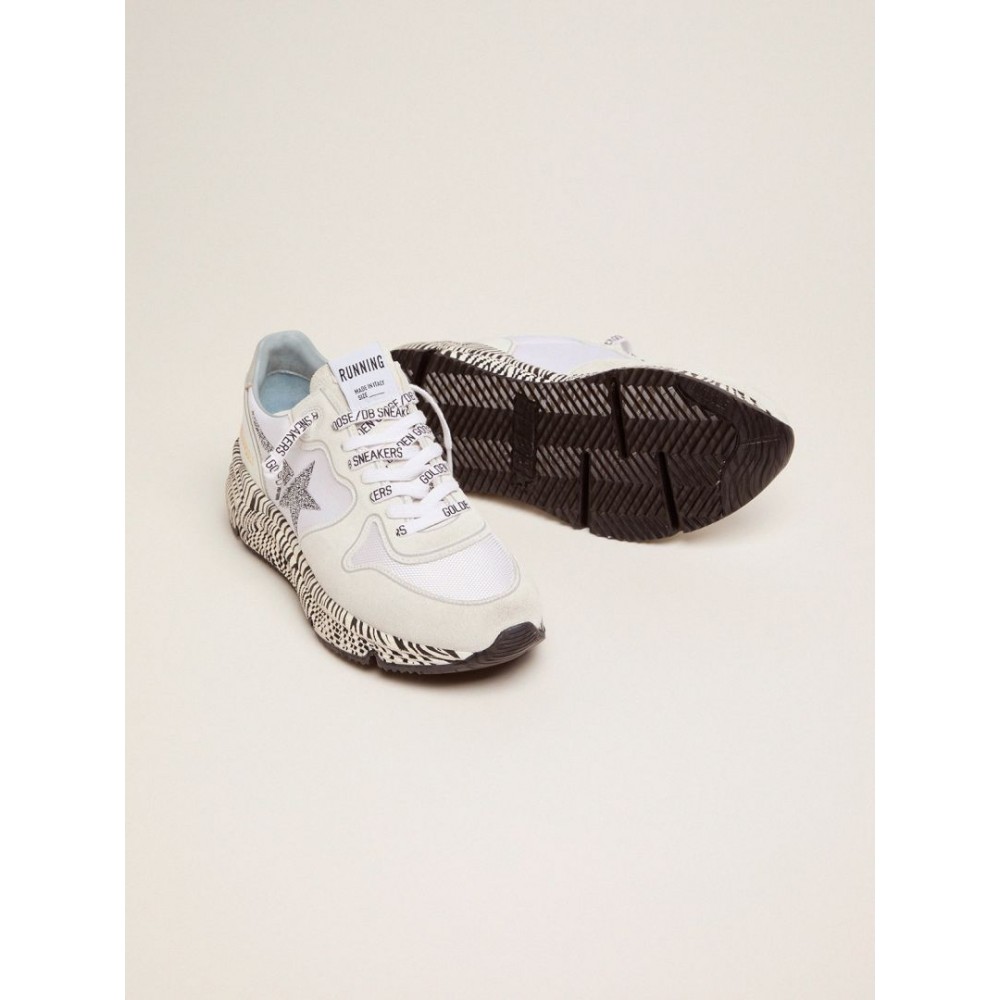 - Running Sole LTD sneakers in white snake-print leather and suede with mesh insert