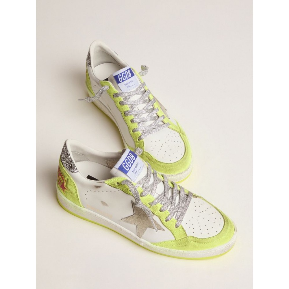 - White Ball Star sneakers with fluorescent yellow inserts and glitter